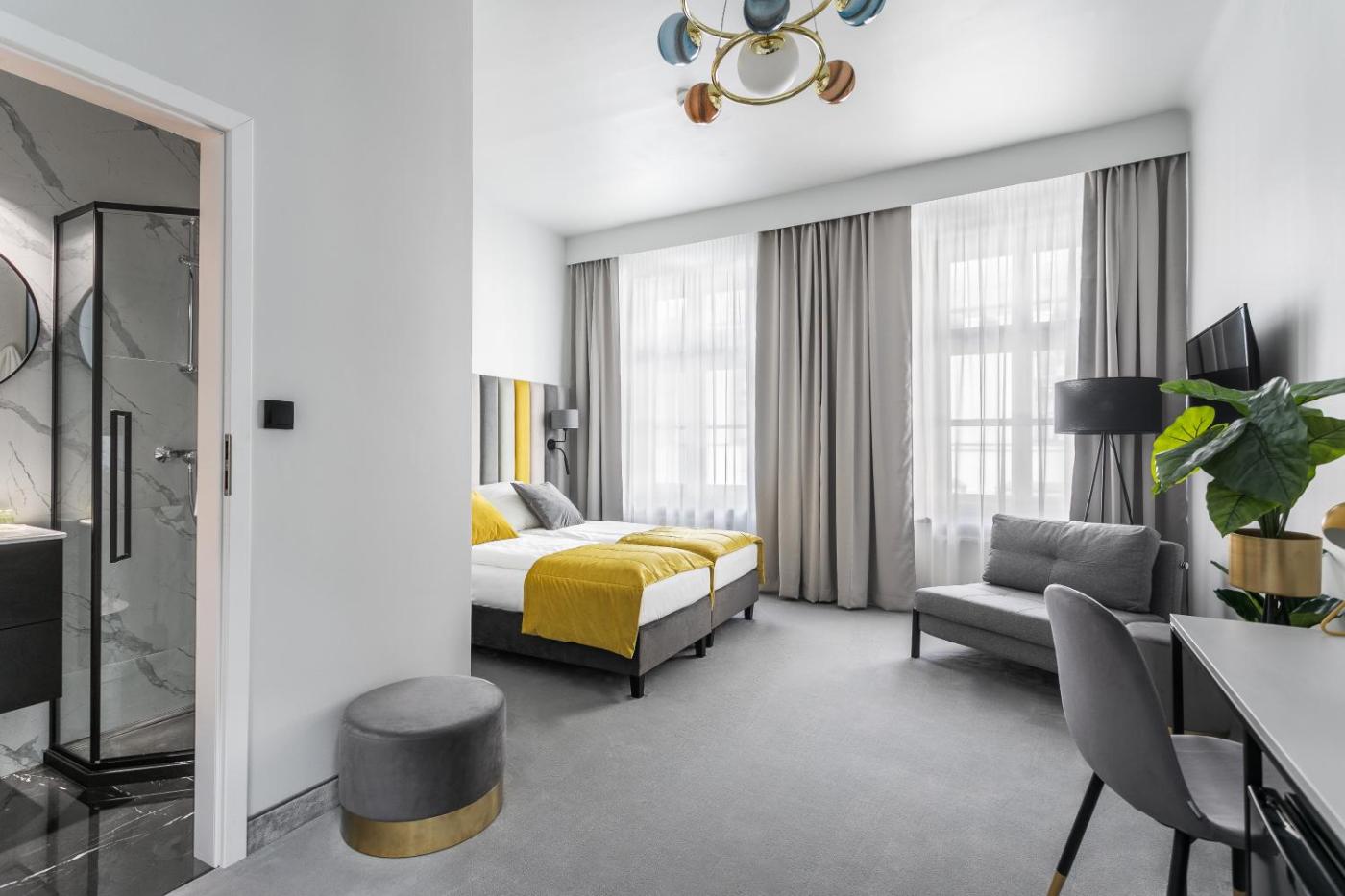 Apartament typu Deluxe. The air-conditioned apartment has 1 bedroom and 1 bathroom with a shower and a hairdryer. The apartment features a flat-screen TV, a wardrobe, a carpeted floor, heating as well as city views. The unit has 2 beds. Apartament - 3 osobowy. Powierzchnia pokoju ok.: 25 mkw. ;