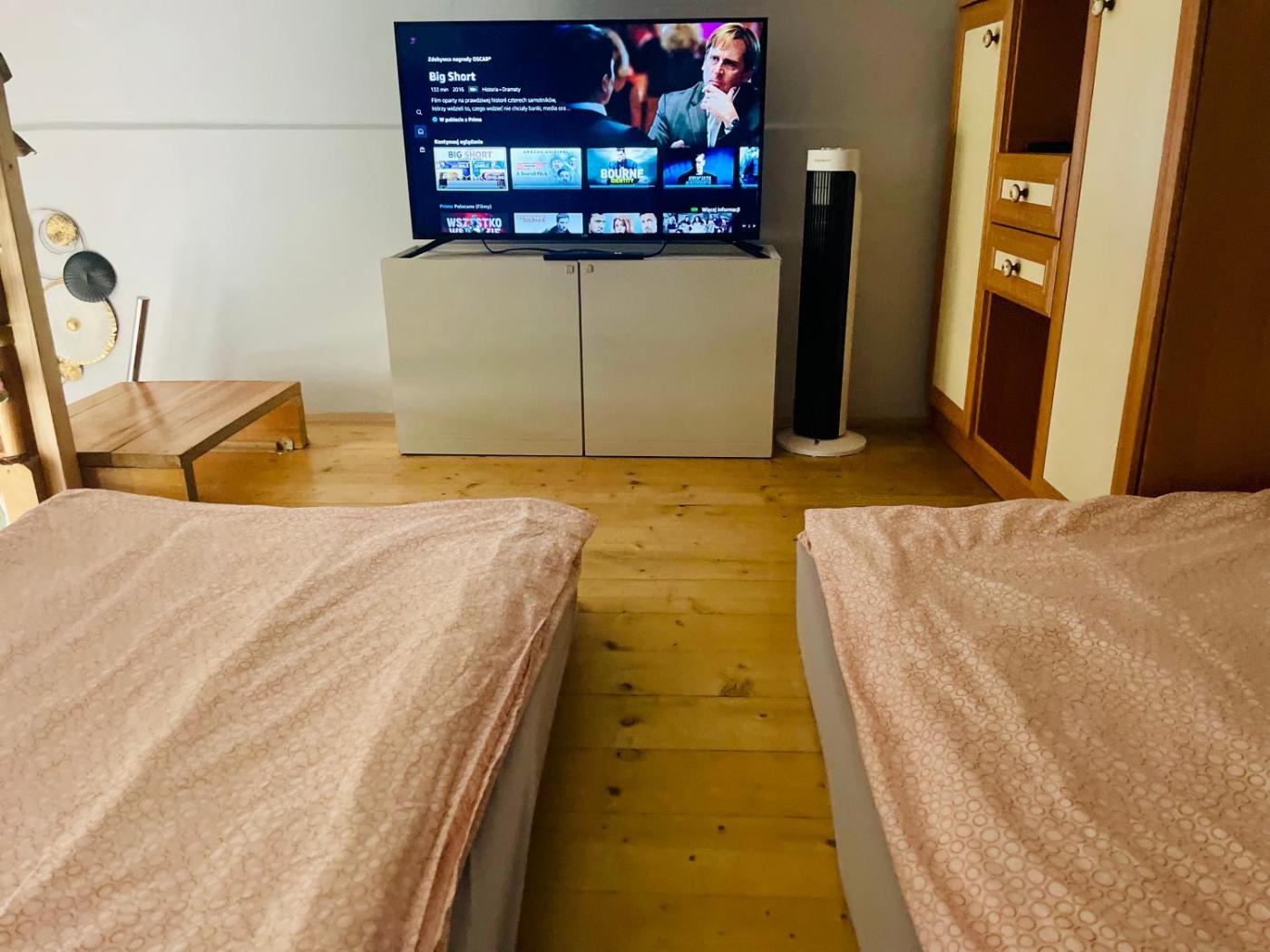 Apartament z 1 sypialnią. This apartment has a teacoffee maker, kitchen and washing machine. The bed is located on the mezzanine. Apartament - 2 osobowy. Powierzchnia pokoju ok.: 20 mkw.